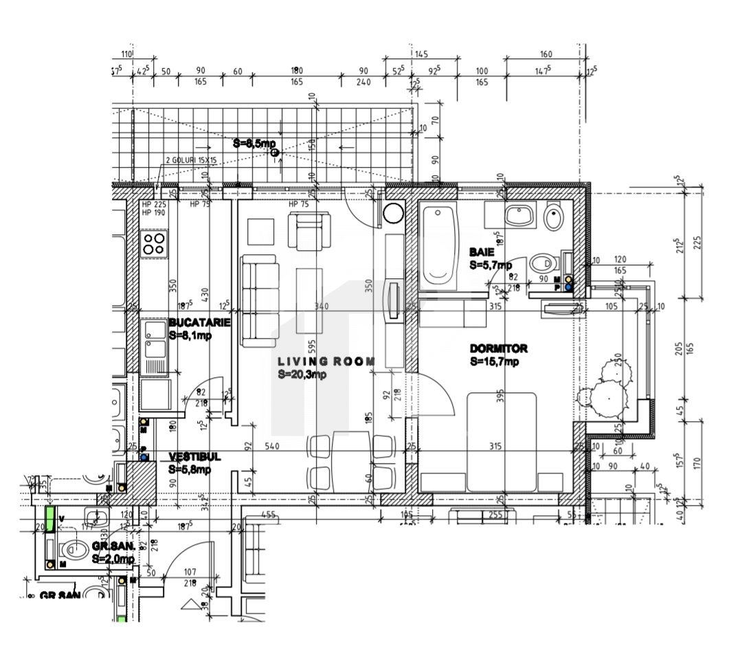 Apartament 2 camere cu vedere mixta, priveliște spre pădure. Bucataria inchisa mobilată și utilată, living cu terasa, wc deserviciu, dormitor cu baie proprie si balcon. Ansamblul dispune de centrala proprie a blocului, paza non-stop, parcari supraterane si subterane, parcare exterioara -10.000 EUR plus TVA, parcare subterană -15.000 EUR plus TVA.